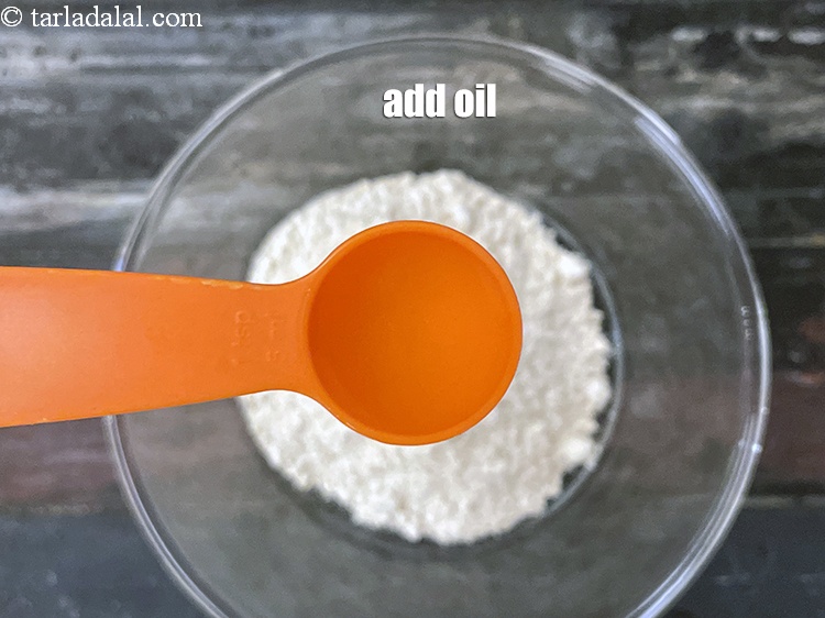 - Combine the whole wheat flour, oil and salt in a deep bowl and knead into a soft dough using enough water. Keep aside.