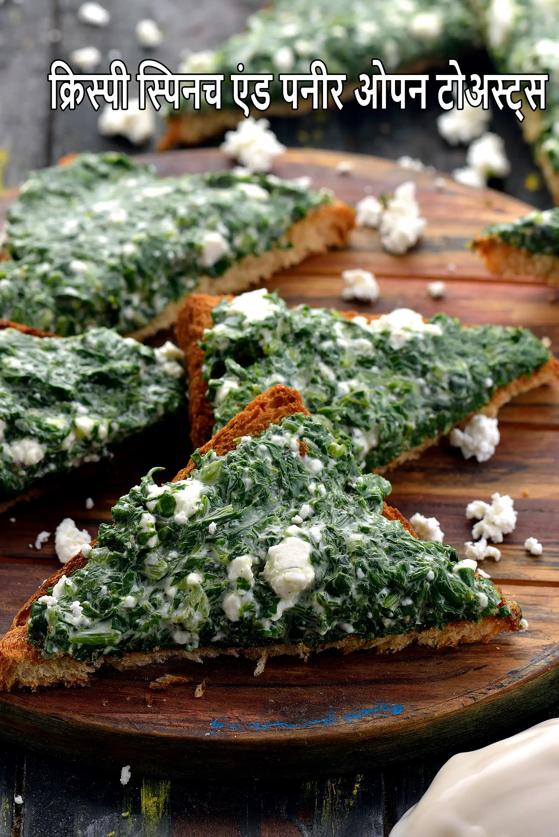 क्रिस्पी पालक और पनीर ओपन टोस्ट को तुरंत परोसें।