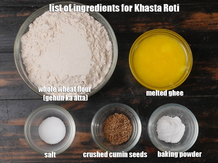 See the below image of list of ingredients for khasta roti.