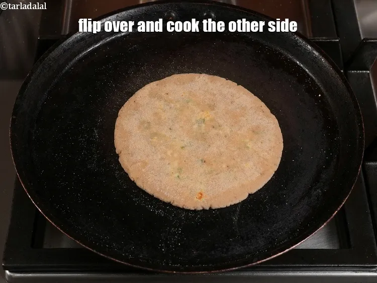 - राजगीरे का आटे का प्रयोग कर 150 mm (6) व्यास के गोल आकार में दुबारा बेल लें।