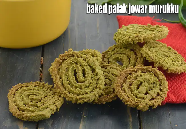 baked palak jowar murukku recipe | Indian baked jowar chakli | jowar murukku with spinach | healthy palak chakli |