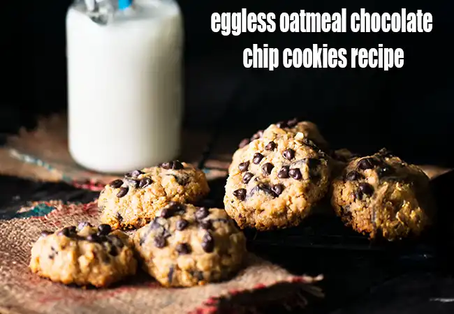 eggless oatmeal chocolate chip cookies recipe | soft and gooey oatmeal chocolate chip cookies | Indian oatmeal cookies | chocolate oat biscuits