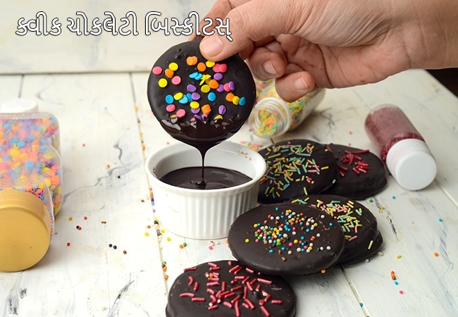 ઝડપી ચોકલેટી બિસ્કિટ રેસીપી | ચોકલેટ કોટેડ મેરી બિસ્કિટ | સરળ ભારતીય ચોકલેટ બિસ્કિટ | બાળકો માટે ટિફિન રેસીપી | Quick Chocolaty Biscuits