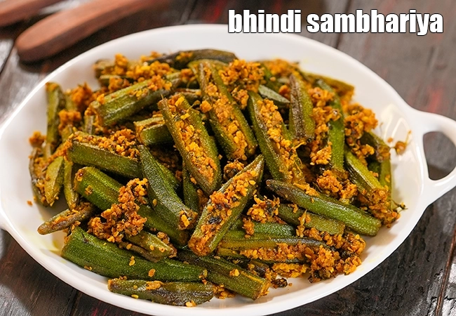 bhindi sambhariya recipe | stuffed okra fry | Gujarati style stuffed bhindi. With its traditional and timeless appeal, this Gujarati style stuffed bhindi can be served at any occasion, with any chapati and kadhi.