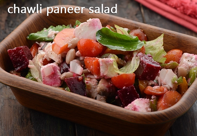 chawli paneer salad recipe | lobhia vegetable salad | healthy cow pea salad with greens