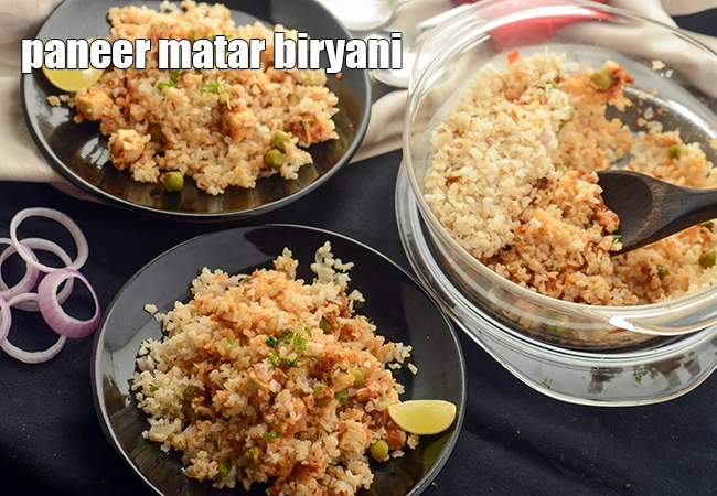 paneer matar biryani recipe | brown rice veg biryani | healthy paneer brown rice biryani | green peas brown rice biryani