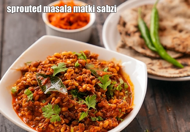 sprouted masala matki sabzi recipe | sprouted moth masala | matki sprouts curry | healthy snack |