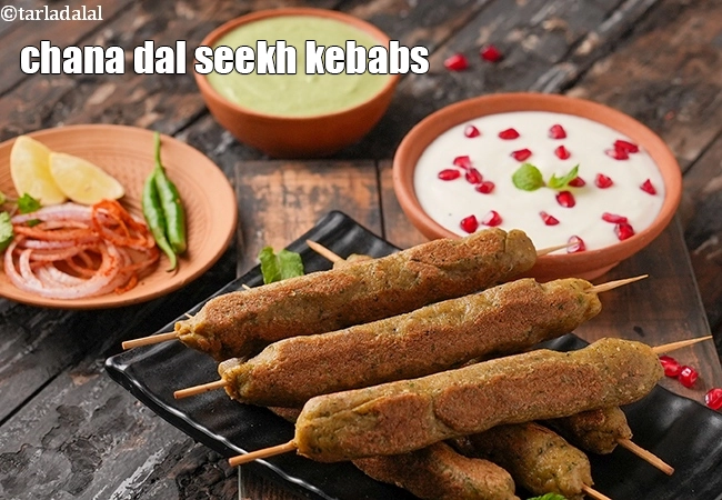 Chana Dal Seekh Kebabs recipe | Jain kebab | healthy tava Chana Dal Seekh Kebab | Perfect chana dal seekh kebabs, made with the ideal proportions of chana dal, raw banana and chopped cabbage, excitingly flavoured with mint, green chillies and spice powders, can be served as a starter.