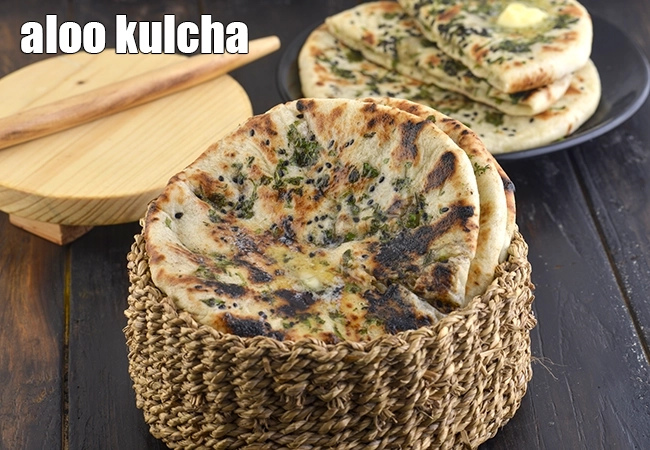 Kulchas are the most sought after flatbreads after naan. They are traditionally made with plain flour and curd. They make a great accompaniment for all kinds of gravies and subzis, especially spicy ones. Stuff them with a tangy potato mixture and make these delicious Aloo Kulcha, they make a meal by themselves. Also, you can stuff them with paneer, cheese or a combination of aloo-cheese, aloo-paneer and eat them with pickled onions.