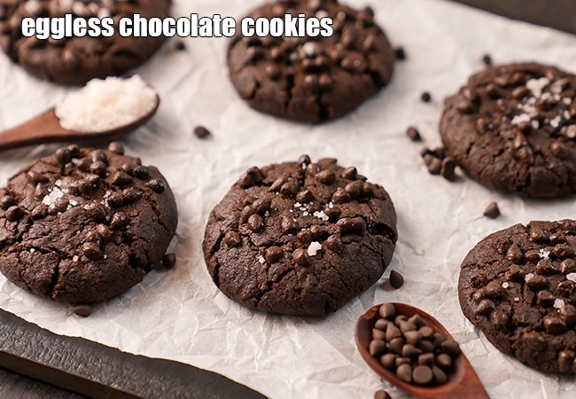 eggless chocolate cookies recipe | Indian style dark chocolate cookies | double chocolate chip cookies