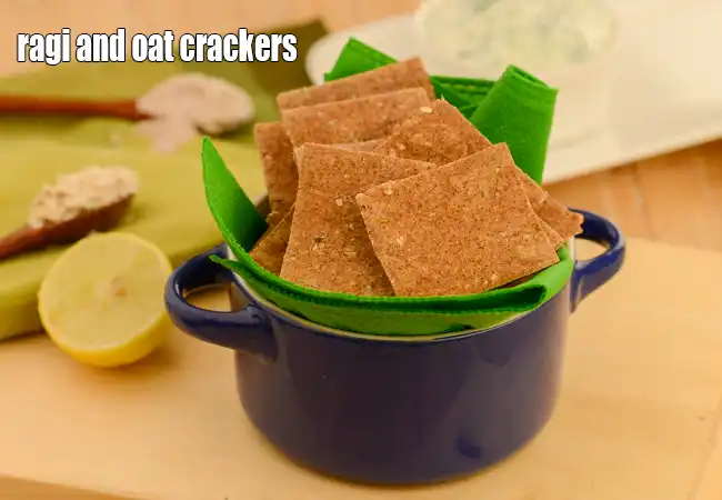 ragi and oat crackers recipe | nachni crackers | baked ragi snack | low calorie snack |