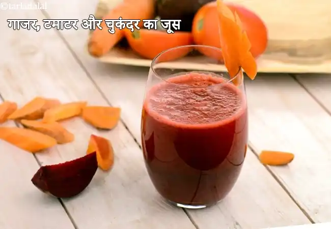 गाजर, टमाटर और चुकंदर का जूस |- Carrot, Tomato and Beetroot Juice. इससे आपको अपने दिन की शुरुआत पोषक और ऊर्जा बढ़ाने के साथ-साथ आपको संतृप्त करने में भी होगी।