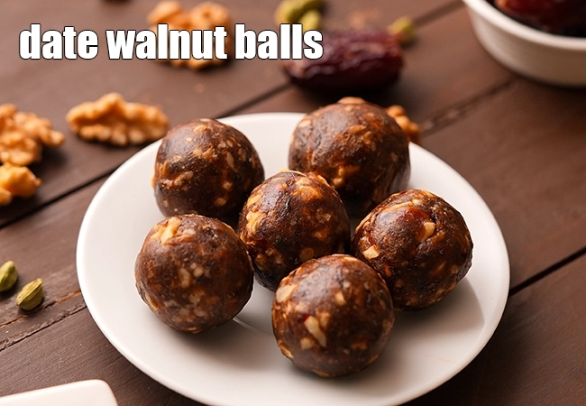 date walnut balls recipe | khajur akhrot balls | 3 ingredient vegan date nut balls | sugar free date nut balls | with 10 amazing images.