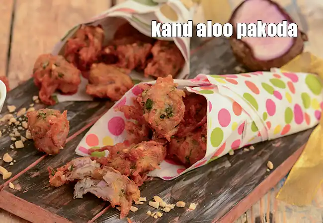 kand aloo pakoda recipe | navratri, vrat ka khana | upvas aloo kand pakora | aloo bhajiya for fasting |