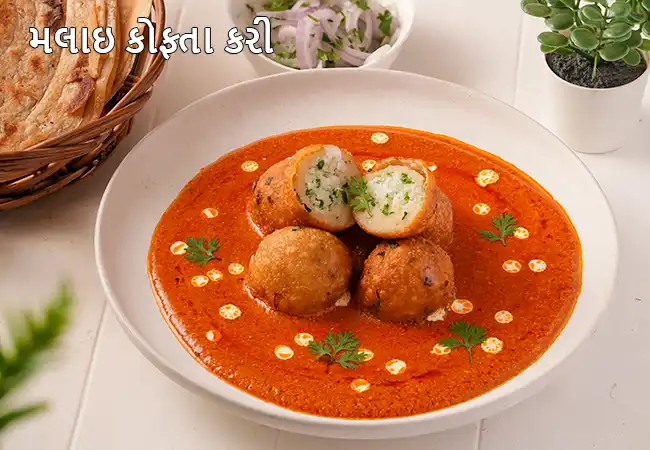 મલાઈ કોફ્તા — નરમ પનીર/શાકભાજીના કોફ્તા ક્રીમી ગ્રેવીમાં — લાજવાબ અને ખાસ પ્રસંગોએ ખૂબ લોકપ્રિય વાનગી।