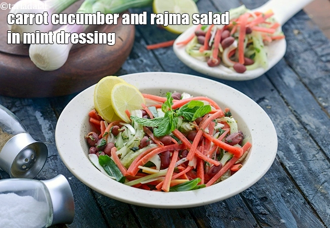 carrot cucumber and rajma Salad in mint dressing recipe | vegetable salad with mint and lemon dressing | healthy weight loss vegetable salad | healthy Indian salad recipe for weight loss
