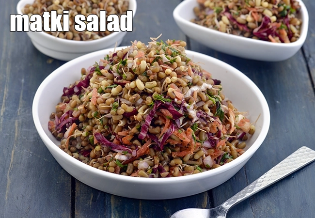matki salad recipe | healthy sprouts salad | easy sprouts salad | how to make healthy moth bean salad recipe | One serving of matki salad delivers 18% iron, 16% calcium, 16% protein of your Recommended Dietary Allowance ( RDA).