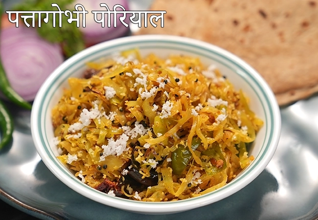 पत्तागोभी पोरियाल रेसिपी | दक्षिण भारतीय स्टाइल पत्ता गोभी पोरियाल | पत्तागोभी थोरन | पत्तागोभी पोरियाल रेसिपी हिंदी में | cabbage poriyal recipe