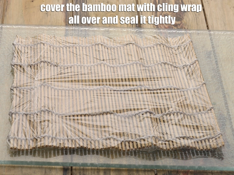 Cover the bamboo mat with cling wrap all over and seal it tightly.
