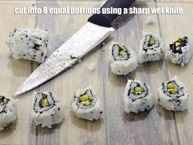Roll it very tightly with the help of a bamboo mat, pressing each time while rolling.