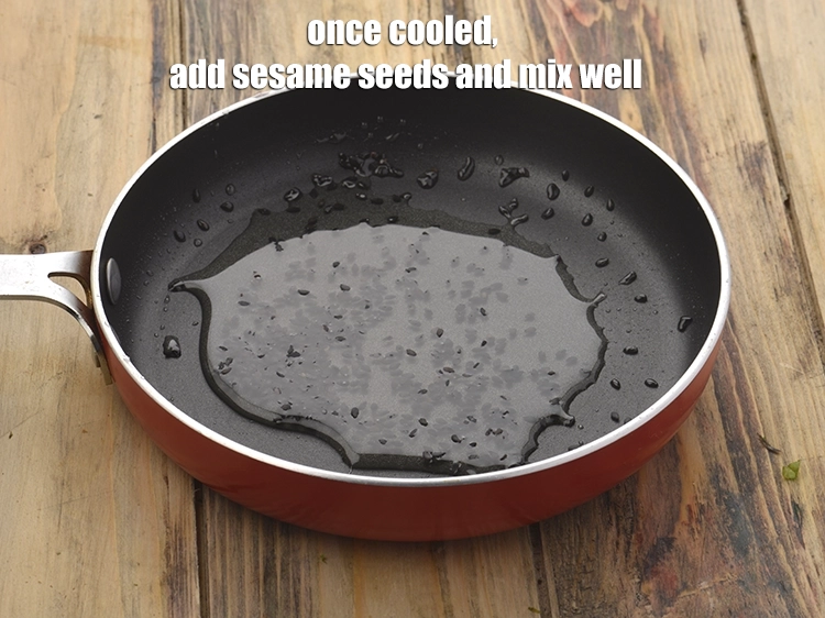 - Once cooled, add the sesame seeds and mxi well. Keep aside.