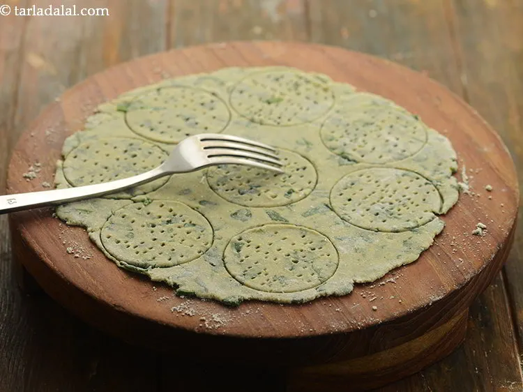 - Repast steps 6 and 7 to bake 1 more batch of baked palak methi puris | healthy palak methi puri for weight loss | baked spinach fenugreek puri |