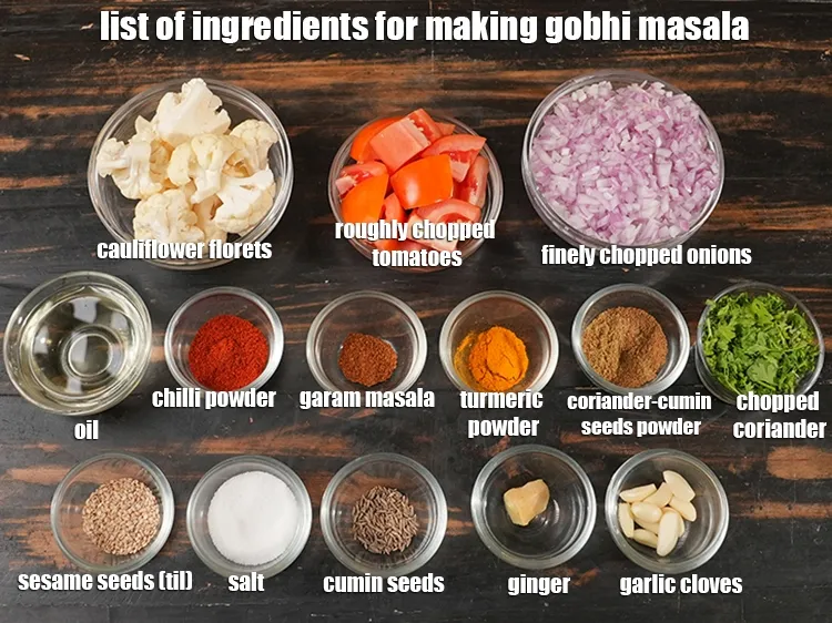 गोभी मसाला रेसिपी बनाने के लिए सामग्री की सूची की नीचे दी गई छवि देखें।