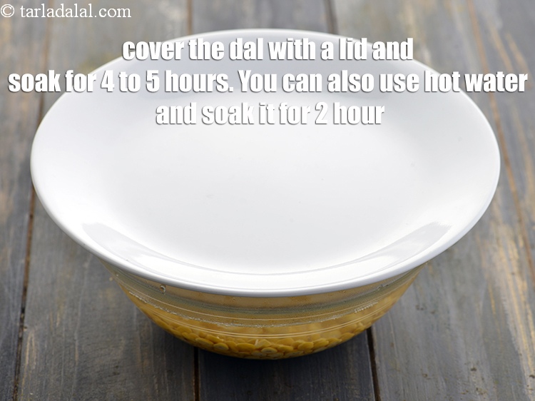 Cover the dal with a lid and soak for 4 to 5 hours. You can also use hot water and soak it for 2 hours.