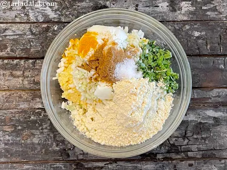 Mix all ingredients of chana dal cabbage tikki for weight and diabetes well.