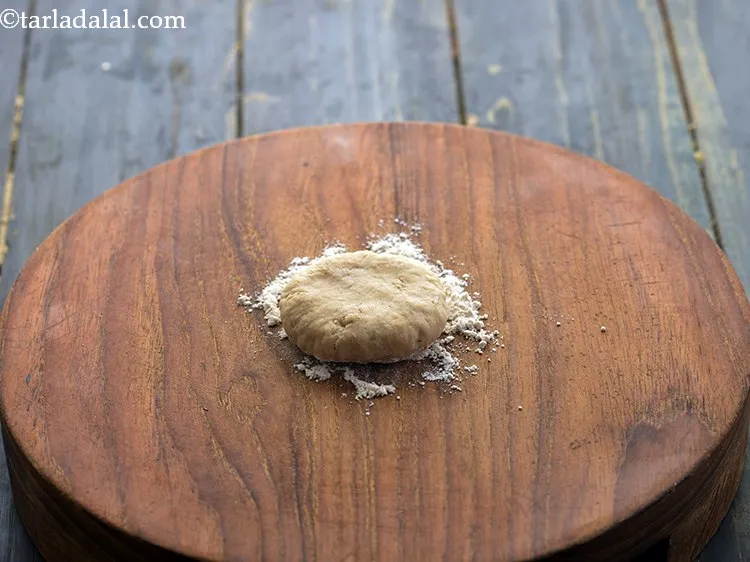 Roll again into a circle of 175 mm. (7”) diameter circle using a little whole wheat flour for rolling.
