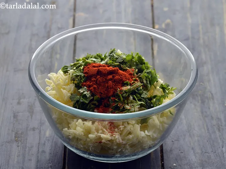 Add the chopped coriander. Also, you can add ginger, garlic, onion or finely chopped vegetables for an added flavour and crunch.