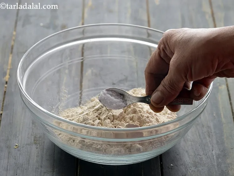 - Combine the whole wheat flour and salt in a deep bowl and knead into a soft dough using enough water. Keep aside.