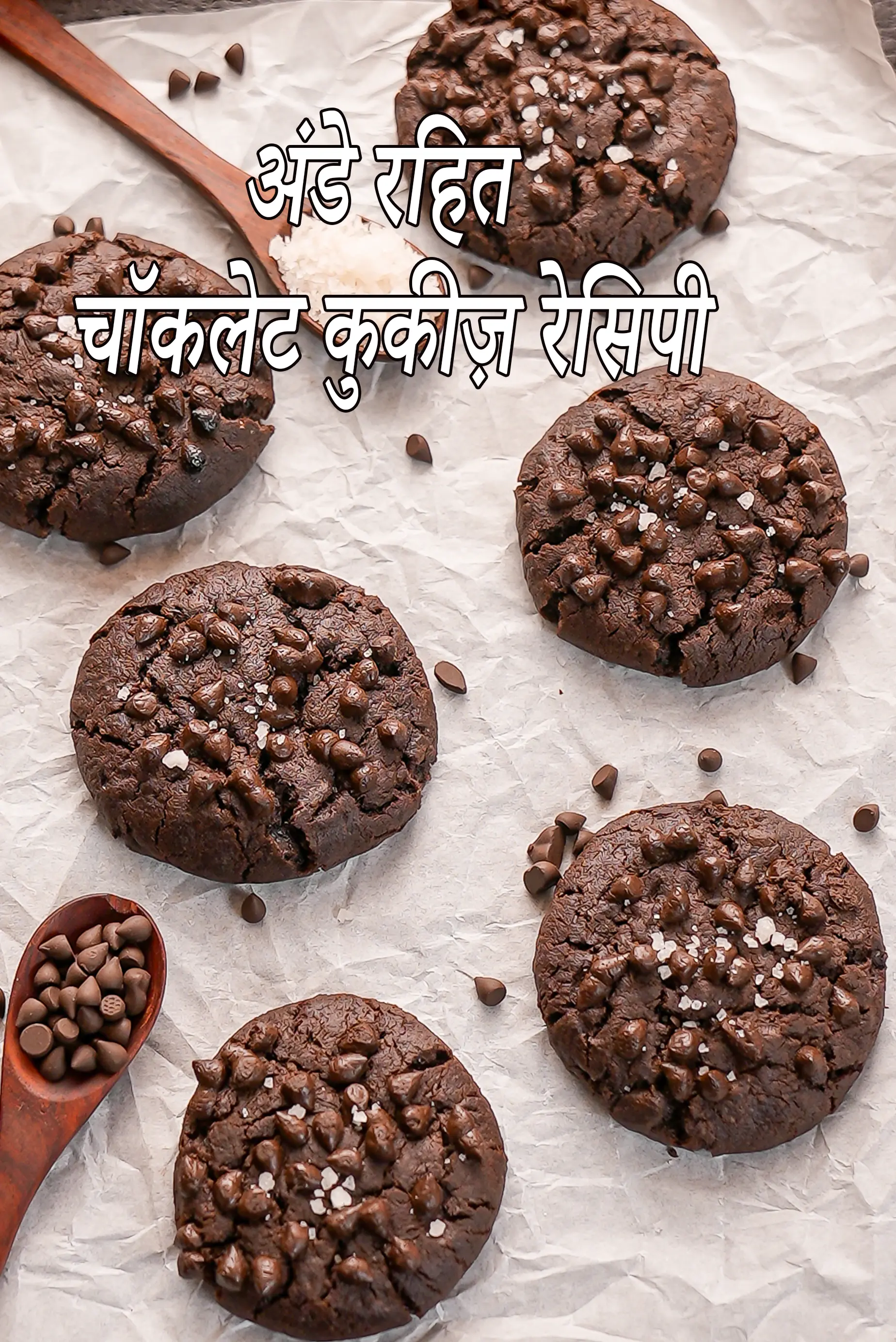 अंडे रहित चॉकलेट कुकीज़ रेसिपी | भारतीय स्टाइल डार्क चॉकलेट कुकीज़ | डबल चॉकलेट चिप कुकीज़ | अंडे रहित चॉकलेट कुकीज़ रेसिपी हिंदी में |