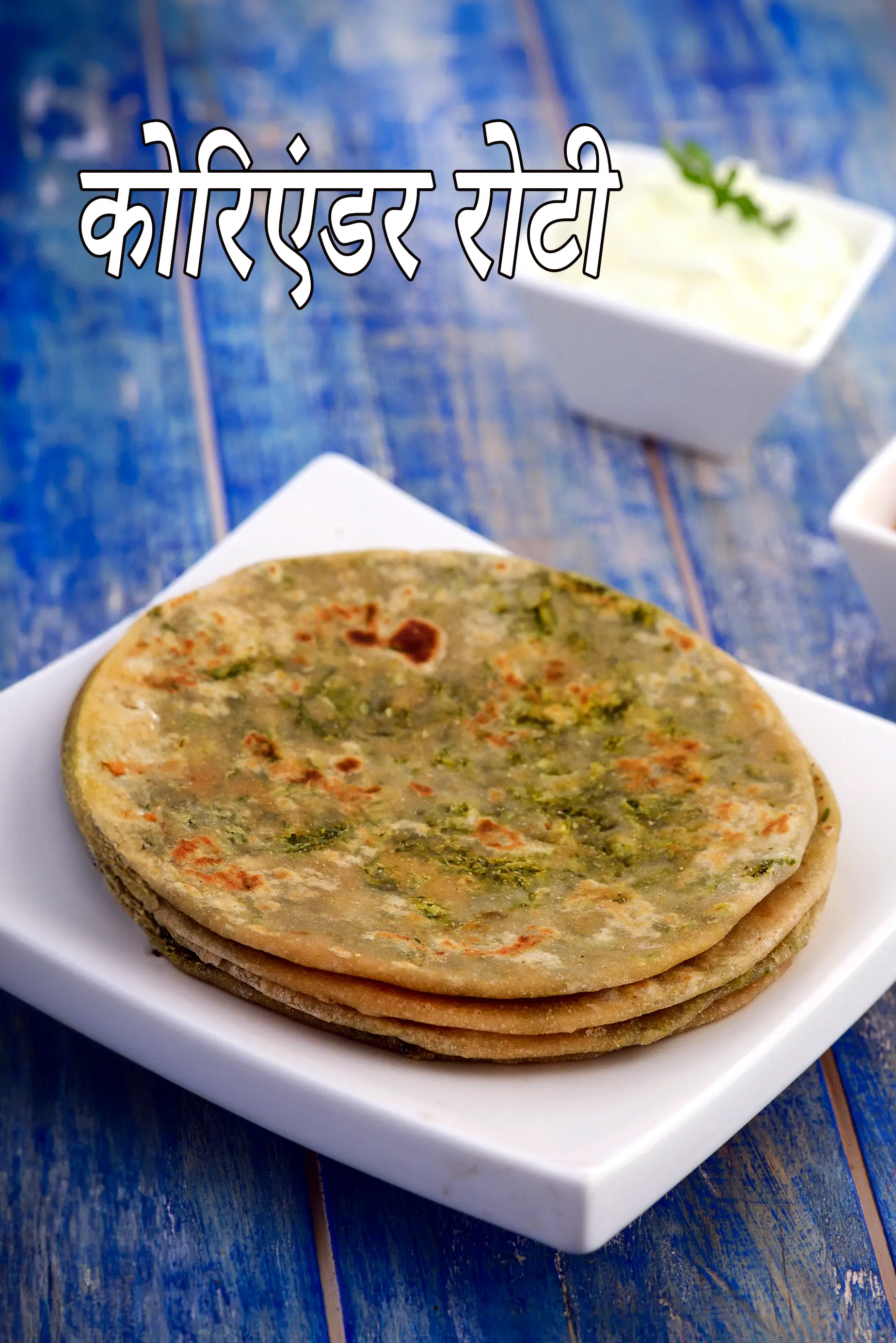 कोरिएंडर रोटी रेसिपी | धनिया रोटी | हेल्दी कोरिएंडर रोटी | coriander roti recipe in hindi language | with 27 amazing images.