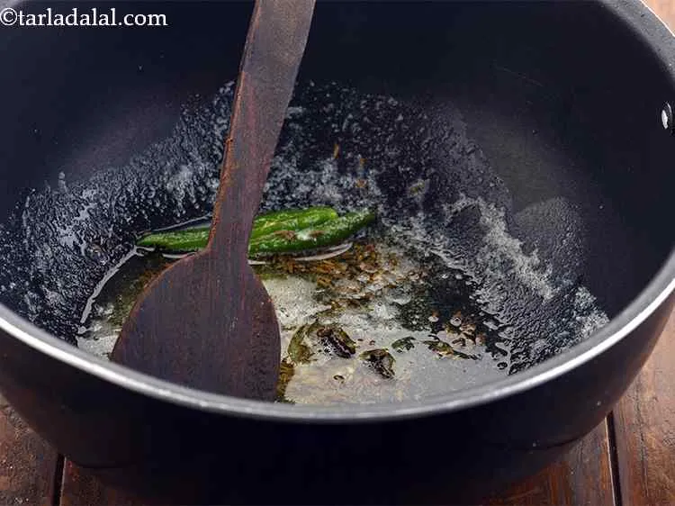 - तड़के के लिए, एक गहरे पैन में मक्ख़न को गरम करके उसमें जीरा डालिए।