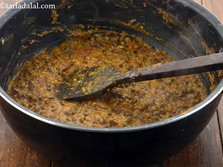 दाल मखनी पर नोट्स | 1. उरद के कटोरे को ढककर रात भर रख दें। उन्हें रात भर भिगोना महत्वपूर्ण है ताकि वे पकाने के लिए कम समय लें। 2. ७ सीटी के लिए या जब तक दाल पक न जाए तब तक प्रेशर कुक करें। उड़द की दाल और राजमा दोनों को चबा कर नहीं खाना चाहिए और न ही खाने पर प्रतिरोध करना चाहिए, इसलिए सुनिश्चित करें कि वे बहुत अच्छी तरह से पके हुए हैं। प्रेशर कुकर को पूरी तरह से ठंडा करें यानी डिप्रेस करें और ढक्कन खोलें। आप देखेंगे कि उड़द और राजमा अब नरम हो गए हैं। 3. दाल मखनी को मध्यम आंच पर १० से १५ मिनट तक उबलने दें। यह वास्तव में मलाईदार और पौष्टिक दाल पाने के लिए सबसे महत्वपूर्ण कदम है। यदि आप महसूस करते हैं कि दाल मखनी अभी भी गाढ़ी है, तो अधिक पानी डालें। परंपरागत रूप से, इस दाल को लकड़ीयो में कम आंच पर रात भर के लिए उबाला जाता है, इसलिए इसे लंबे समय तक पकाने से सबसे अच्छा स्वाद निकलके आता है।
