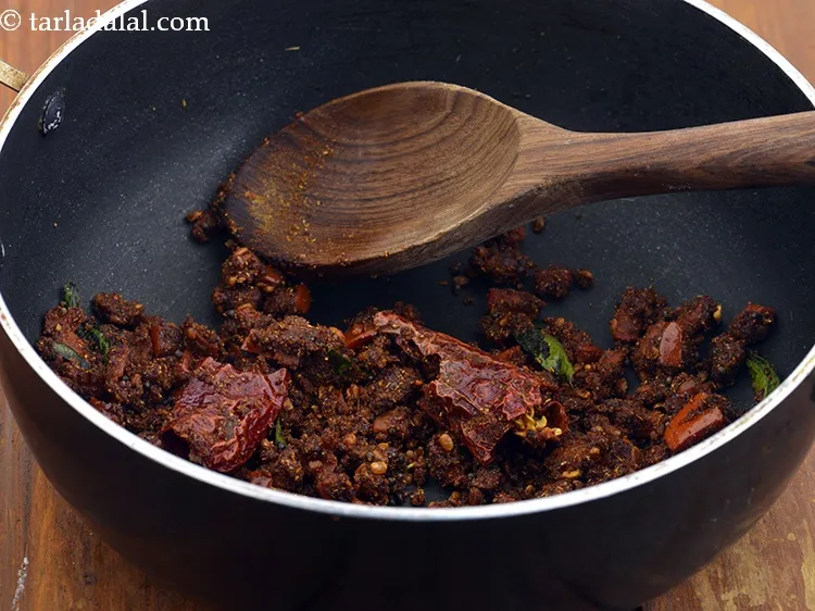 Sauté on a medium flame for 1 minute. You will love the aroma of this rasam powder being cooked.