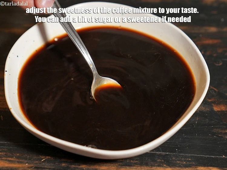 कॉफी मिश्रण की मिठास को अपने स्वाद के अनुसार समायोजित करें। यदि आवश्यक हो तो आप थोड़ी चीनी या कोई मीठा पदार्थ मिला सकते हैं।