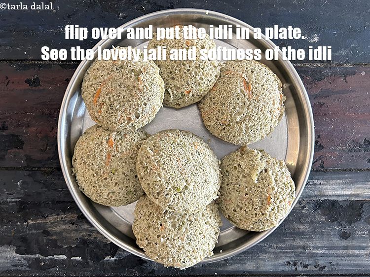 इडली को ठंडा करें और चम्मच से डीमोल्ड करें। गरम होने पर इडली निकालने की कोशिश करेंगे तो इडली टूट जाएगी।