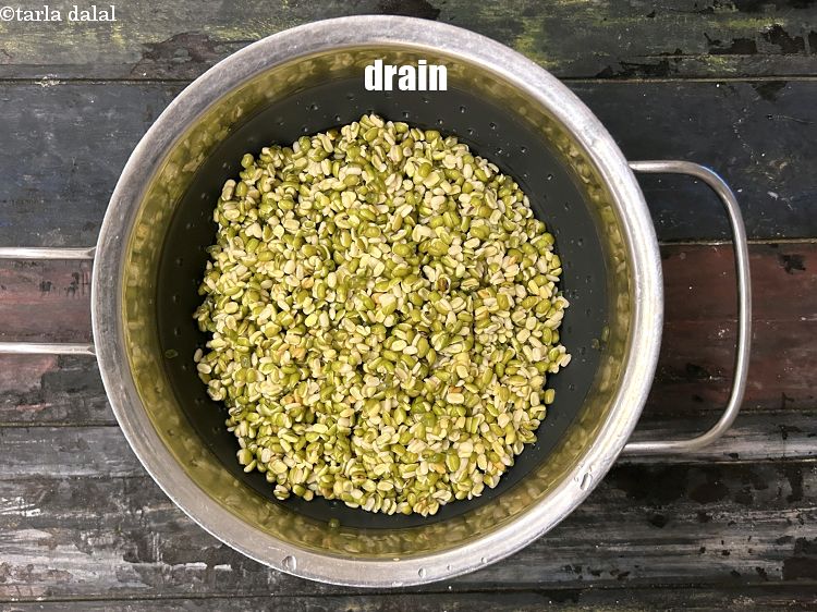 एक गहरे कटोरे में १ कप हरी मूंग की दाल डालें।