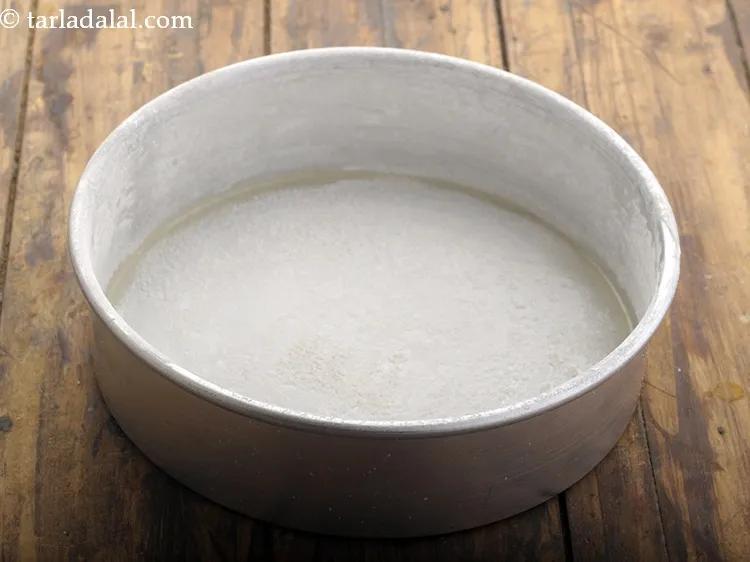 1. To bake  Indian style eggless chocolate sponge cake | eggless chocolate vegetarian sponge cake recipe | with condensed milk, grease a 175 mm. (7”) diameter cake tin with butter or oil.