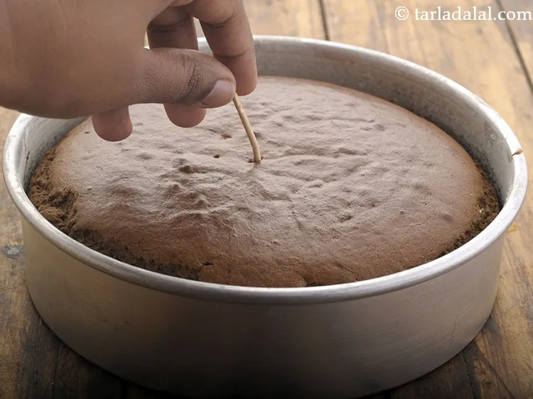 5. Check the chocolate cake by inserting a toothpick in the center of the cake. If it comes out clean that means the cake is ready or else bake it for some more time