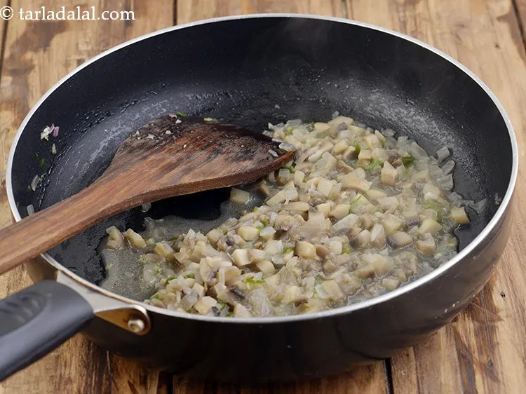 - Add the mushrooms and sauté on a medium flame for 2 minutes.