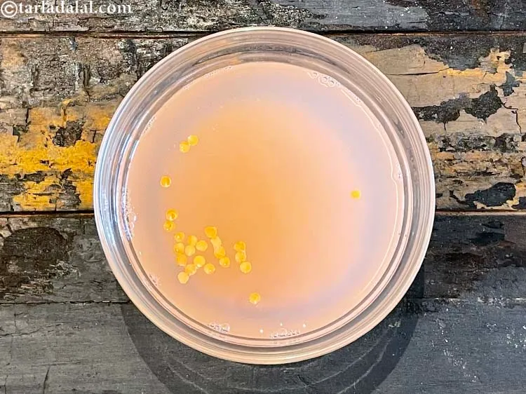 Step 4 – Put 3/4 cup&nbsp;<a href="https://www.tarladalal.com/glossary-masoor-dal-split-red-lentil-masoor-ki-dal-303i">masoor dal (split red lentil)</a>&nbsp;in a glass bowl and cover with water.&nbsp;1 …