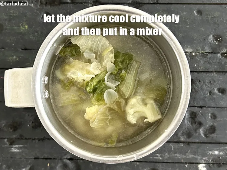 लैट्यूस एण्ड कॉलीफ्लॉवर सूप के लिए प्रो युक्तियाँ। 1. ३ कप बेसिक वेजिटेबल स्टॉक या पानी डालें। वेजिटेबल स्टॉक जिस डिश में डाला जाता है, उसमें रोमांचक स्वाद और सुगंध जोड़ देता है। यह स्वस्थ भारतीय वेजिटेबल स्टॉक> कैलोरी में कम है और वजन घटाने के लिए अच्छा है। 2. आप लैट्यूस एण्ड कॉलीफ्लॉवर सूप रेसिपी में थोड़ा लहसुन मिला सकते हैं। 3. स्वादानुसार नमक डालें। हमने १/४ टी-स्पून नमक डाला है। अगर आप हाई ब्लड प्रेशर से पीड़ित हैं तो नमक कम कर दें या खाने से बचें।