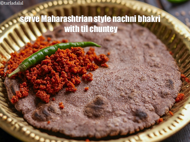 महाराष्ट्रीयन स्टाइल नाचनी भाकरी को तिल चटनी के साथ परोसें।