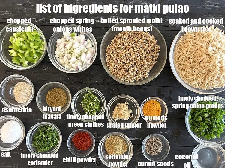 what is matki pulao made of ? See below image of list of ingredients for matki pulao.