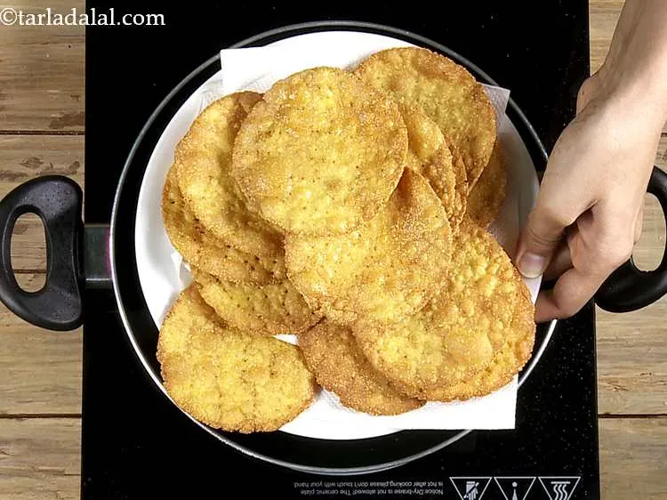 तेल सोखनेवाले कागज पर निकाले और एक तरफ रख दें।