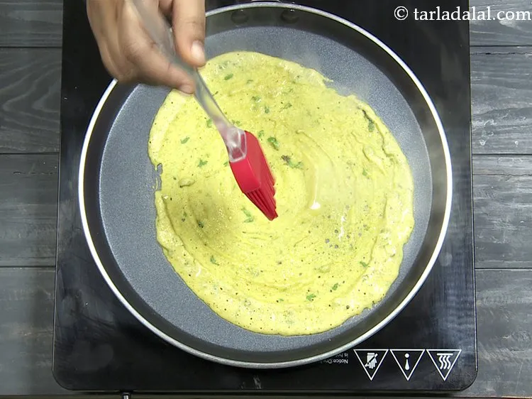 Spread ¼ tsp of oil around the circumference and on the dosa.