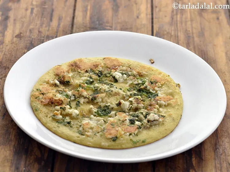 Sprinkle 2 tbsp low-fat paneer. Alternatively, you can mix together paneer with vegetables and spices & make a wholesome stuffing & then make stuffed chilas.